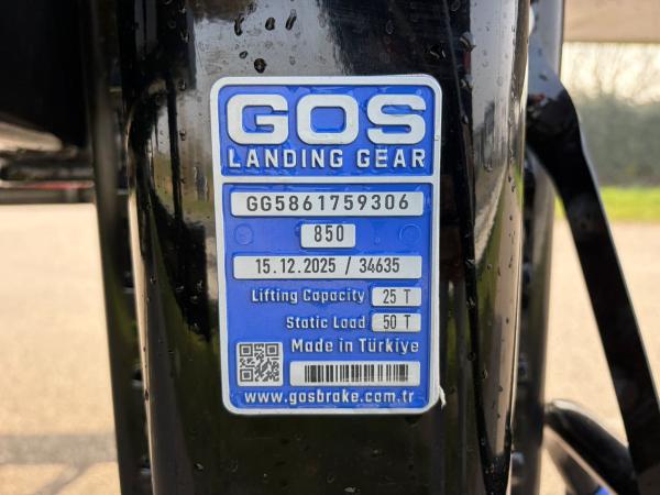Construction & Chassis: The chassis is a heavy-duty I-type frame made of fully welded S355 steel with a UPE 240 outer frame for extra durability. The chassis is welded using an automatic ARC-submerged process, and the superstructure is welded with robot welding. The vehicle is equipped with 4 x 16-ton Özgül drum-brake axles, mechanical leaf spring suspension (12–14 leaves), a single-position EU-approved 2” kingpin (Çayırova Brand), 16+1 12 R 22.5 tires on 9.00 x 22.5 steel rims, and a mechanically operated two-speed landing gear (Gos Brand).