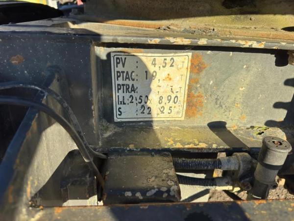 Essieu arrière: Roues jumelées; Charge maximale sur essieu: 9000 kg; Sculptures des pneus gauche interne: 50%; Sculptures des pneus gauche externe: 50%; Sculptures des pneus droit externe: 50%; Sculptures des pneus droit externe: 50%; Suspension: suspension à lames