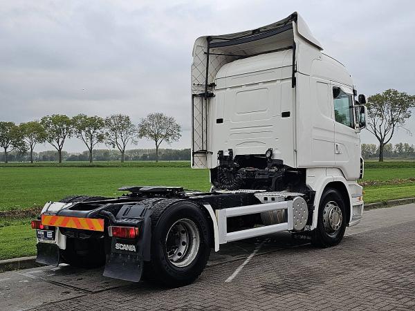 Aantal Assen: 2, Configuratie: 4x2, Diesel inhoud totaal: 700 liter, Schotelhoogte: 117 cm, Schotel type: Fixed, Aantal sperren: 1, Soort cabine: Highline, Cruise control, Tachograaf, Digitale tachograaf, Airconditioning, Standkachel, Kleur: Wit, Soort lampen: Halogeen, Motorvermogen: 309 Kw (414 Hp), Brandstof: diesel, Euro: 4, Soort versnellingsbak: Opti-cruise, Merk versnellingsbak: Scania, Versnellingen: 12, Koppelingspedaal, Extra remsysteem, Merk retarder: Scania, Stuurbekrachtiging, ABS (Anti Blokkeer Systeem), ASR (Anti Slip Regeling), Start accu, Stoelopstelling: 1+1, Stoelbekleding: stof, Stoel verstelling: Handmatig