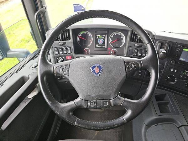 Aantal Assen: 3, Configuratie: 6x2, Eigen gewicht: 8825 kg, Totaalgewicht: 27000 kg, Diesel inhoud totaal: 540 liter, Schotelhoogte: 118 cm, Schotel type: Fixed, Aantal sperren: 1, Vering type: vollucht, Soort cabine: slaapcabine, Cruise control, Tachograaf, Digitale tachograaf, Airconditioning, Standkachel, Elektrische ramen, Elektrische spiegels, Radio/cassette, Kleur: Blauw, Verwarmde spiegels, Soort lampen: Halogeen, Climatecontrol, Stoelverwarming, Bluetooth, Motorvermogen: 302 Kw (405 Hp), Brandstof: diesel, Euro: 6, Soort versnellingsbak: Opti-cruise, Merk versnellingsbak: Scania, Versnellingen: 12, Koppelingspedaal, Stuurbekrachtiging, ABS (Anti Blokkeer Systeem), ASR (Anti Slip Regeling), Start accu, Centrale vergrendeling, Stoelopstelling: 1+1, Stoelbekleding: stof, Stoel verstelling: Handmatig