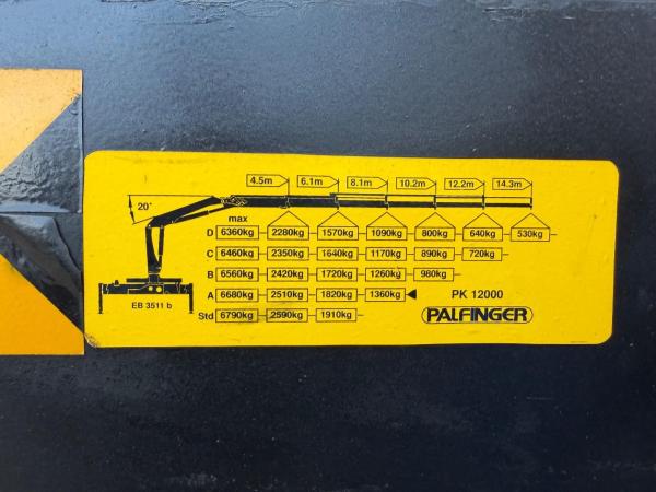 Kraan: PALFINGER PK 12000, bouwjaar 2001, achter de cabine