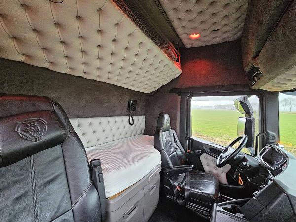 Aantal Assen: 3, Configuratie: 6x2, Laadvermogen: 17125 kg, Eigen gewicht: 9875 kg, Totaalgewicht: 27000 kg, Diesel inhoud totaal: 930 liter, 2e dieseltank, Trekgewicht ongeremd: 750 kg, Schotelhoogte: 118 cm, Schotel type: Slide, Aantal sperren: 1, Vering type: luchtvering, Soort cabine: slaapcabine, Cruise control, Tachograaf, Digitale tachograaf, Airconditioning, Stand airco, Standkachel, Elektrische ramen, Elektrische spiegels, Radio/cassette, Carplay, GPS navigatie, Kleur: Wit, Verwarmde spiegels, Soort lampen: Led, Laneassist, Climatecontrol, Stoelverwarming, Bluetooth, Zwaailichten, Motorvermogen: 426 Kw (571 Hp), Brandstof: diesel, Euro: 6, Soort versnellingsbak: Opti-cruise, Merk versnellingsbak: Scania, Versnellingen: 12, Extra remsysteem, Merk retarder: Scania, Stuurbekrachtiging, ABS (Anti Blokkeer Systeem), ASR (Anti Slip Regeling), Start accu, Centrale vergrendeling, Zitplaatsen: 2, Stoelopstelling: 1+1, Stoelbekleding: leder, Stoel verstelling: Handmatig