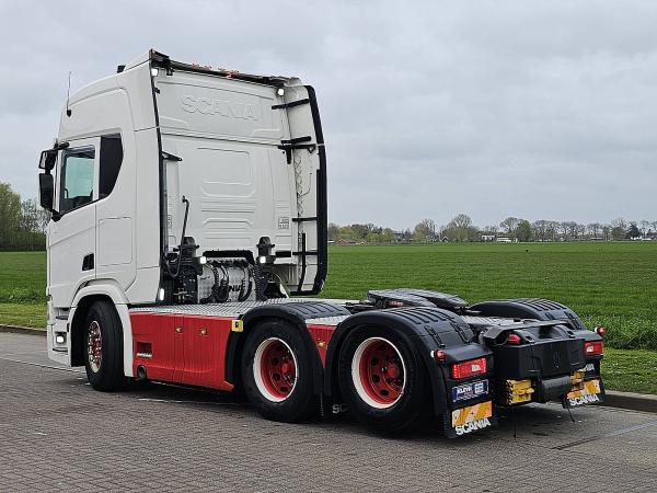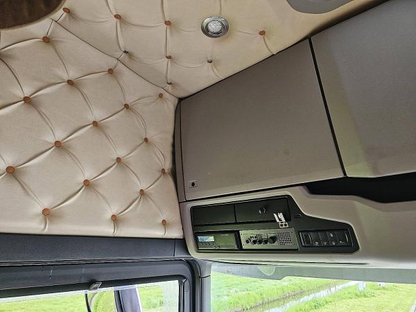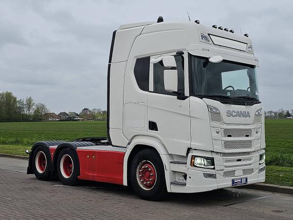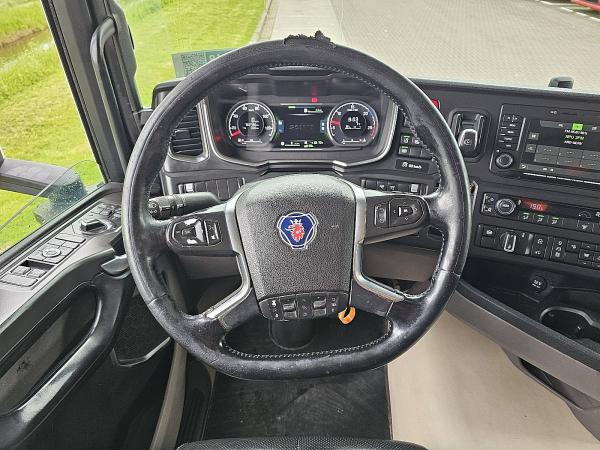 Aantal Assen: 3, Configuratie: 6x2, Eigen gewicht: 9625 kg, Totaalgewicht: 27000 kg, Diesel inhoud totaal: 610 liter, Schotelhoogte: 119 cm, Schotel type: Slide, Aantal sperren: 1, Vering type: vollucht, Soort cabine: Hoge cabine, Cruise control, Tachograaf, Digitale tachograaf, Airconditioning, Stand airco, Standkachel, Elektrische ramen, Elektrische spiegels, Radio/cassette, Carplay, GPS navigatie, Kleur: Meerkleurig, Verwarmde spiegels, Soort lampen: Led, Laneassist, Climatecontrol, Stoelverwarming, Bluetooth, Zwaailichten, Motorvermogen: 331 Kw (444 Hp), Brandstof: diesel, Euro: 6, Soort versnellingsbak: Opti-cruise, Merk versnellingsbak: Scania, Versnellingen: 12, Extra remsysteem, Merk retarder: Scania, Stuurbekrachtiging, ABS (Anti Blokkeer Systeem), ASR (Anti Slip Regeling), Start accu, Centrale vergrendeling, Stoelopstelling: 1+1, Stoelbekleding: leder, Stoel verstelling: Handmatig, FULL AIR / TWIN TIRE BOOGIE / SPECIAL INTERIOR / RETARDER