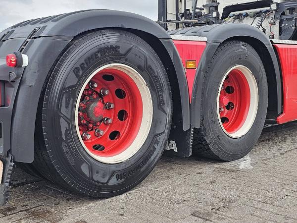 As 1: Bandenmaat: 385/65R22,5; Meesturend; Bandenprofiel links: 7 mm; Bandenprofiel rechts: 8 mm