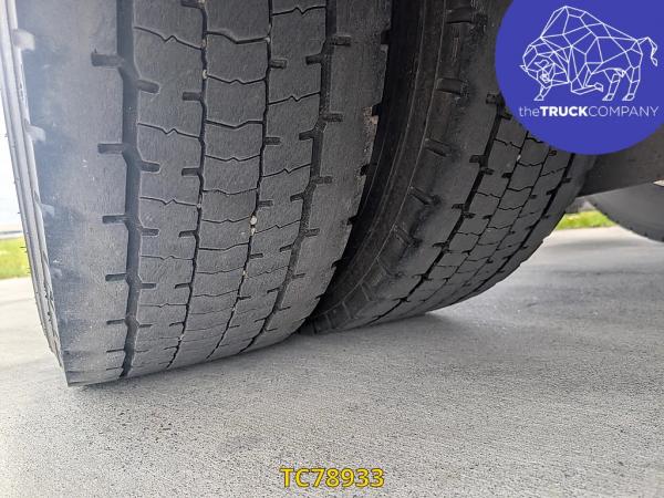 Achteras: Bandenmaat: 315/70 R22.5; Dubbellucht; Bandenprofiel linksbinnen: 6 mm; Bandenprofiel linksbuiten: 5 mm; Bandenprofiel rechtsbinnen: 7 mm; Bandenprofiel rechtsbuiten: 7 mm