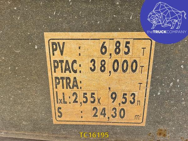Achteras 2: Bandenmaat: 385/65 R22.5; Lichtmetalen velgen; Bandenprofiel links: 7 mm; Bandenprofiel rechts: 7 mm