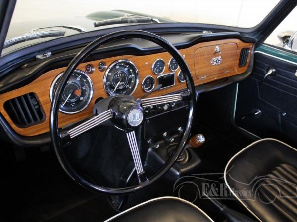 This very beautiful Triumph TR4 A IRS was delivered in 1968 in a beautiful green paint with chrome in very good condition. The complete interior has black leather with white piping and a magnificent wooden dashboard. The car has the original 4 cyl engine and manual gearbox. Thanks tot the IRS this Triumph is a comfortable classis car to drive.