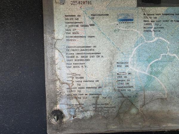 Achteras 3: Max. aslast: 9000 kg; Bandenprofiel links: 50%; Bandenprofiel rechts: 50%