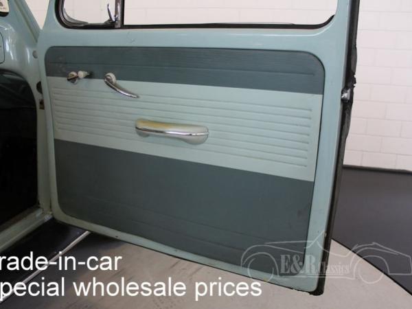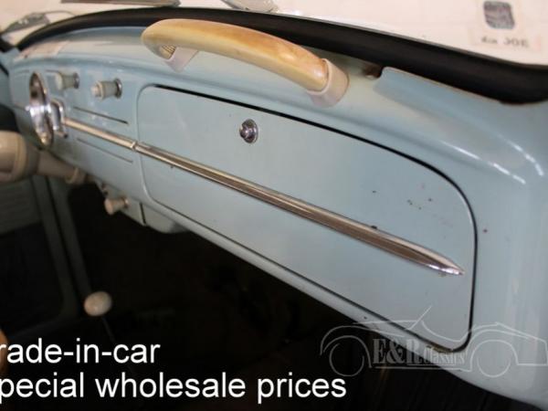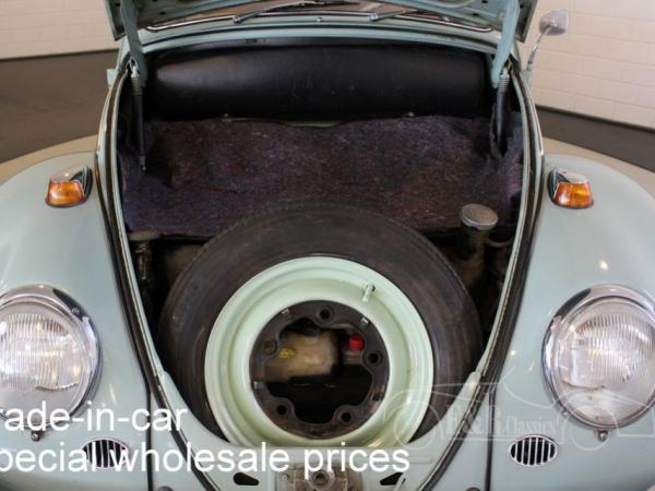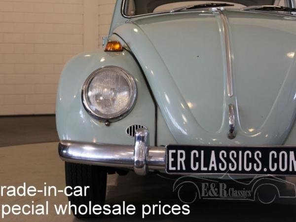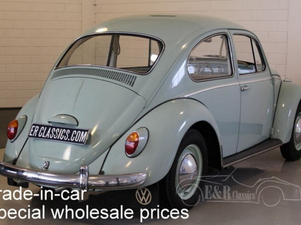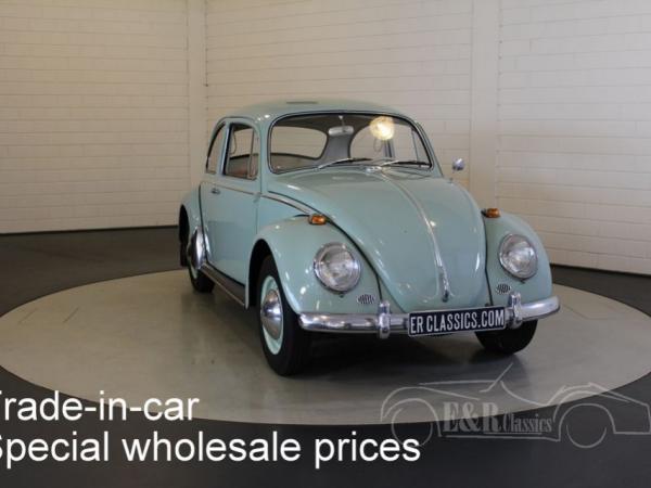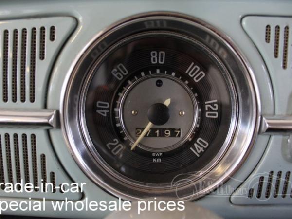 This is a 1965 VW Beetle with Bahama Blue paint. The Volkswagen drives, brakes and shifts gear. The car has cloth interior with a metal dashboard in the colour of the paint. The car has some traces of use. So a very nice driver’s car.