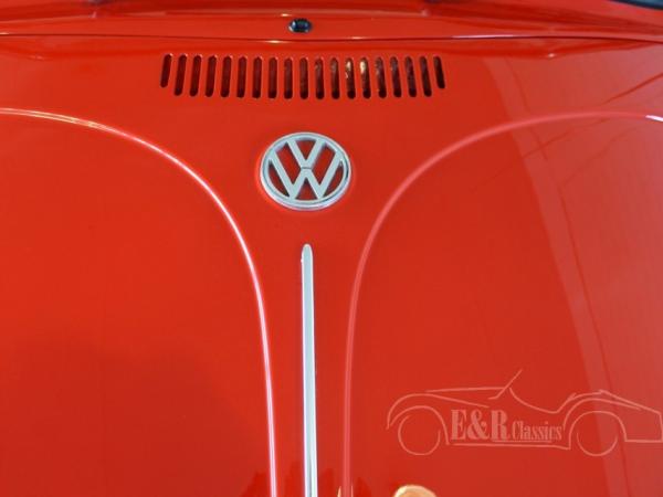 This is a 1970 VW Beetle. This 1302 LS with the straight windshield has beautiful red paint, original Lemmertz GT wheels, black interior and a black cabrio top. Technics in very good condition of course and the car has German MOT.