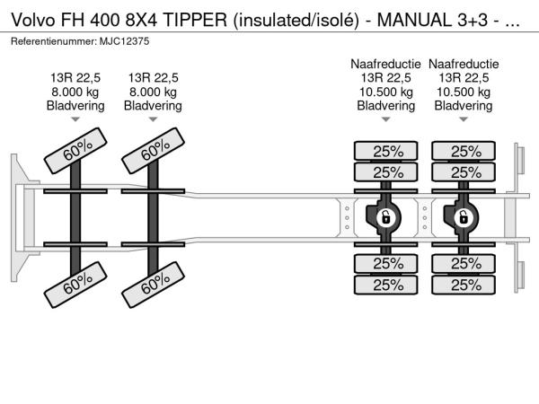 VOLVO (2007) Volvo FH 400 8X4 TIPPER (insulated/isolé) - MANUAL 3+3 - STEEL SPRING / BLATT - EURO 5 - TUV 01/2026 - AXLES HUB REDUCTION - BE TRUCK MJC12375