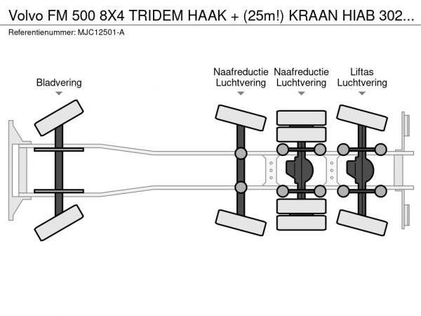 | Particulars | FM 500 8X4 TRIDEM HAAK + (25m!) KRAAN HIAB 302 E-8x + 1 ME + WINCH - *127.000km* - *1976h crane hours* - TOP CONDITION - BE TRUCK |