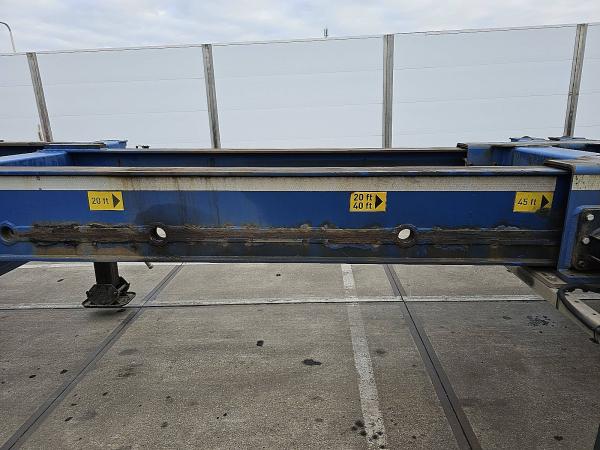 Aantal Assen: 3, Soort chassis: Volledig chassis, Materiaal chassis: staal, Kingpin afmeting: 2 inch, Vering type: luchtvering, ABS (Anti Blokkeer Systeem), EBS, Bouwjaar opbouw: 2018, Twistlocks: 2x20 + 1x30 + 1x40 + 1x45 high cube, Uitschuifbare chassis: midden / achter, Merk as: SAF