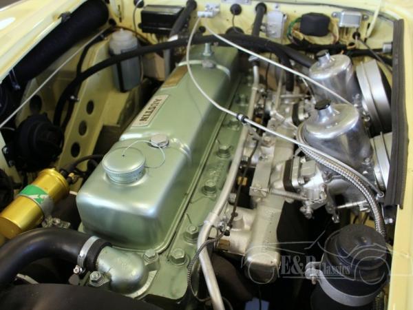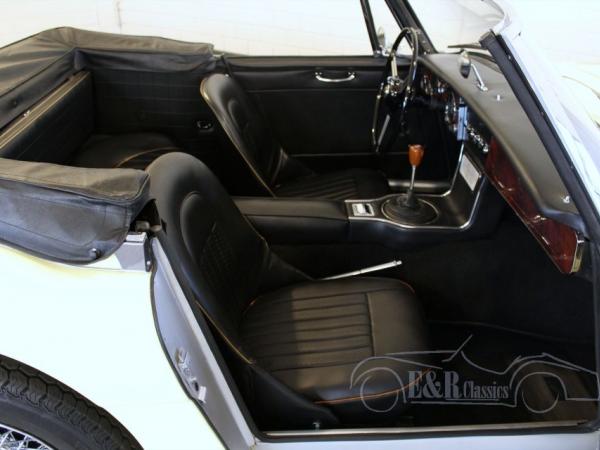 This 1967 Austin Healey 3000 MK3 is fully restored and is in very beautiful condition. The beautiful yellow body has chrome linings, beautiful Carello lights and chrome wire wheels. The wooden dashboard looks chic and has chrome clocks. The car has black leather seats. The Austin Healey produces 170 HP and has the popular overdrive, which makes driving this MK3 even more pleasant. The beautiful sporty sound is great for the fans. So, a fabulous Austin-Healey 3000 MK3