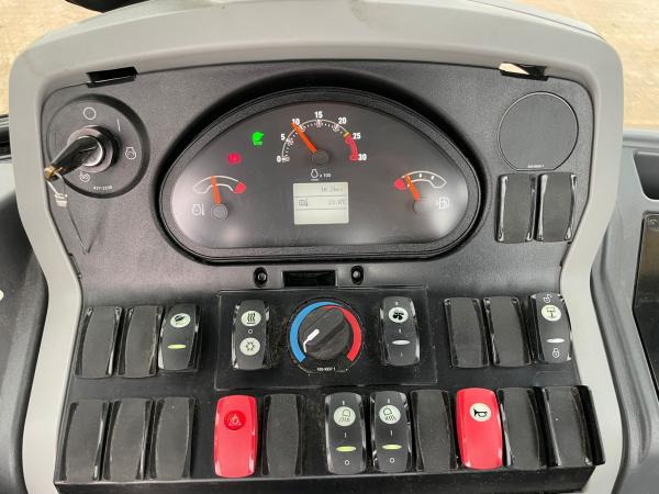 The machine is equipped with a C3.6 engine (56 kW) and features 4x4 drive. It comes with a loading bucket with teeth.