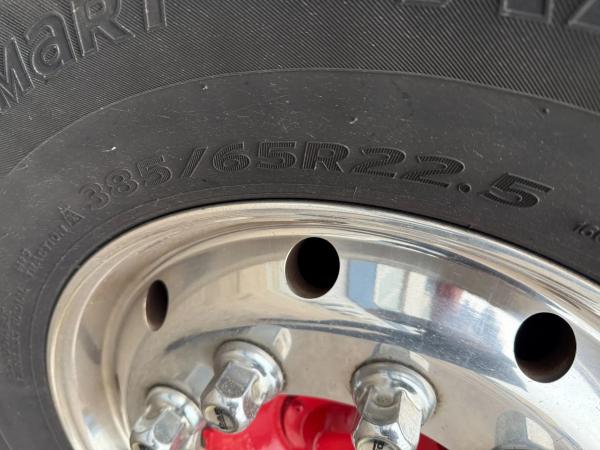 Vooras: Bandenmaat: 385X65X22.5; Lichtmetalen velgen; Max. aslast: 8000 kg; Bandenprofiel links: 50%; Bandenprofiel rechts: 50%; Vering: bladvering