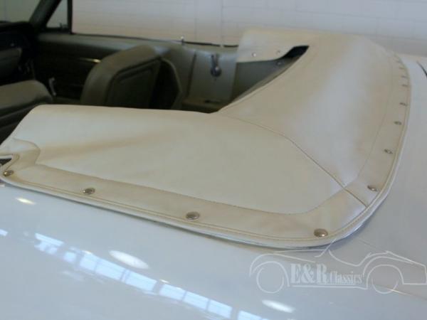 This Ford Mustang convertible was delivered with beautiful Wimbledon White paint, provided with the original Mustang wheels and the dairy original ‘Lower Back Panel’ between the tail lights. The interior has two-tone green vinyl and a beautiful original dashboard. The Ford has a power top, furnished with white vinyl and a functioning airco. The Mustang drives great and is a pleasure to drive.