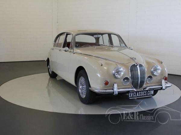 This Jaguar MK2 240 was new delivered on the 6th of june 1968 in Manchester. The Mark 2 has the original colour combination of beige paint with chrome wire wheels and a fabulous red leather interior with the wooden dashboard. The car has the original matching numbers 2483CC engine with the very popular overdrive option. The car has disc brakes all around. This very original Jaguar comes with a lot of documentation since 1969 and is in very good condition.