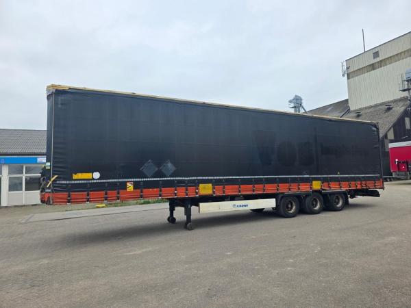 Krone 3-axle curtainside semi-trailer from 2014 is fitted with BPW axles, drum brakes, and air suspension, giving stable handling on the road. It runs on 445/45 R19.5 mega tyres and is suitable for higher volume transport.