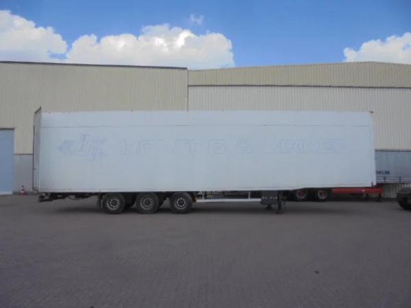 KASTENTRAILER VOORZIEN VAN ROLLERBAAN OP LUCHT EN KETTING LAADSYSTEEM VOOR AUTOMATISCH LADEN