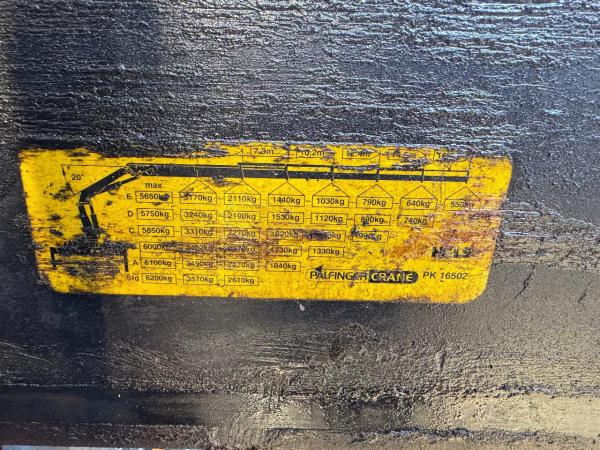 Kraan: PALFINGER PK16502, bouwjaar 2006, achter de cabine
