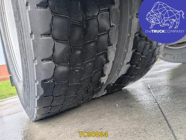 Achteras: Dubbellucht; Bandenprofiel linksbinnen: 7 mm; Bandenprofiel linksbuiten: 5 mm; Bandenprofiel rechtsbinnen: 5 mm; Bandenprofiel rechtsbuiten: 4 mm; Vering: luchtvering