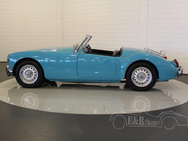 This is an original LHD 1959 MGA Twincam convertible. The car has Glacier Blue paint with a black interior. Optically and technically in very good condition and provided with power brakes and a 5-speed gearbox for more driving comfort. The original 4-speed gearbox comes with the car.