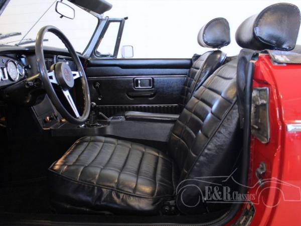 This MGB Roadster was delivered with beautiful Flame Red paint and provided with new Minilite wheels and tyres. The chrome is in fabulous condition and is a great combination with the paint. The MG drives really great and is fully checked in our workshop. The interior has black leather upholstery and the original dashboard with chrome clocks. The interior offers a lot of comfort and makes driving very pleasant. This perfect driving MGB is ready for a lot of driving fun.
