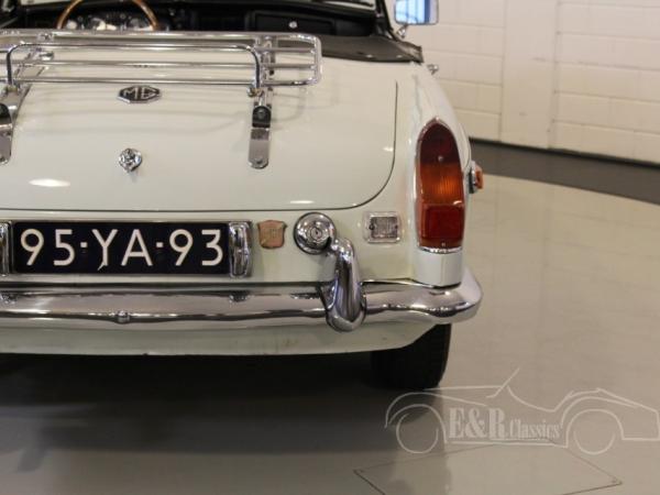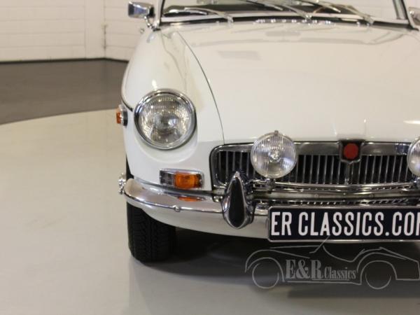 Glacier White 1975 MGB cabriolet. Optically and technically in very good condition. In 2017 the engine was replaced by a new revised engine (invoice present) in our workshop. The car has overdrive and chrome wire wheels. So a MGB ready for lots of driving fun.
