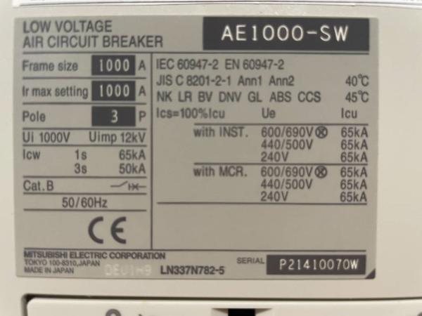 MITSUBISHI (2023) Mitsubishi Circuit breaker 1000A - AE1000-SW 3P - DPX-12648