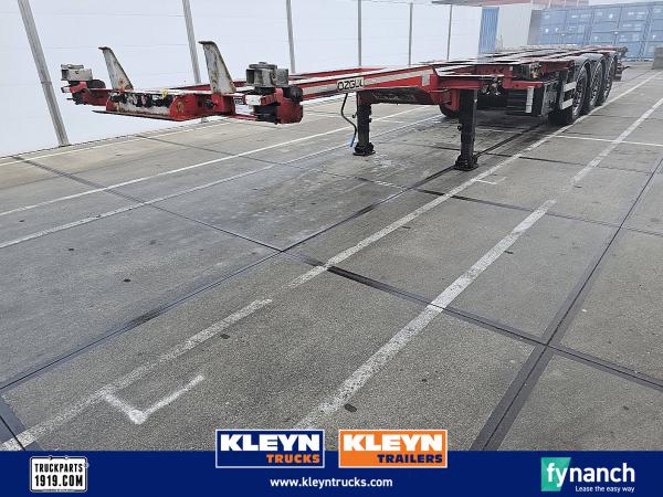 Aantal Assen: 3, Eigen gewicht: 5700 kg, Totaalgewicht: 37000 kg, Soort chassis: Volledig chassis, Materiaal chassis: staal, Kingpin afmeting: 2 inch, Vering type: luchtvering, ABS (Anti Blokkeer Systeem), EBS, Bouwjaar opbouw: 2018, Twistlocks: 2x20 + 1x30 + 1x40 high cube, Uitschuifbare chassis: midden / achter, Merk as: BPW