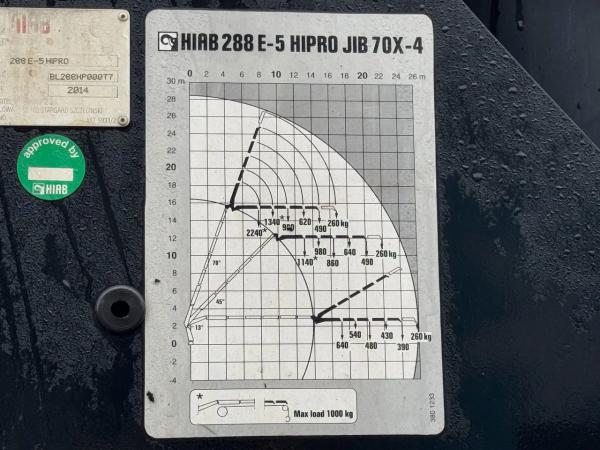 Kraan: HIAB 288 E-5 HIPRO + JIB 70X-4, bouwjaar 2014, achter op het chassis