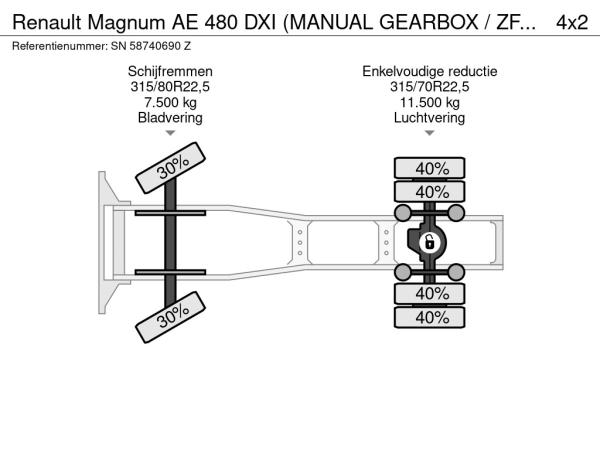 PERFECT CONDITION RENAULT AE480DXI MAGNUM 4x2 TRACTOR UNIT WITH ZF16 MANUAL & RETARDER , 2x DIESELTANK & AIRCONDITIONING!!