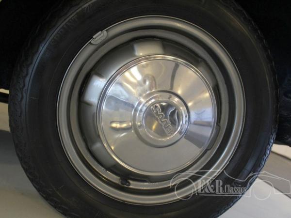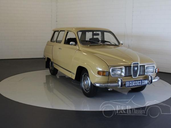 This Saab 95 Sporthatch was originally delivered in Holland in 1973 in beautiful beige (Y2) paint with several chrome details and the round taillights. The V4 engine was very well maintained and functions by the column shift. The interior has the original dashboard and the seat have brown leatherette and cloth upholstery. In the back there is the extra bench, so the car has 7 seats.