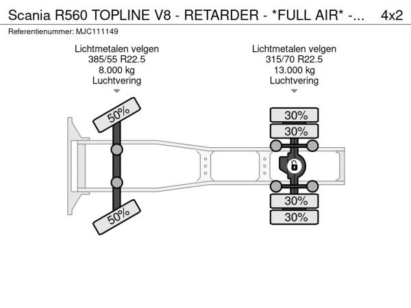 SCANIA (2013) Scania R560 TOPLINE V8 - RETARDER - *FULL AIR* - ALCOA DURABRIGHT - FULL SPOILERS / SIDESKIRTS - 2 DIESELTANKS - FR truck MJC111149