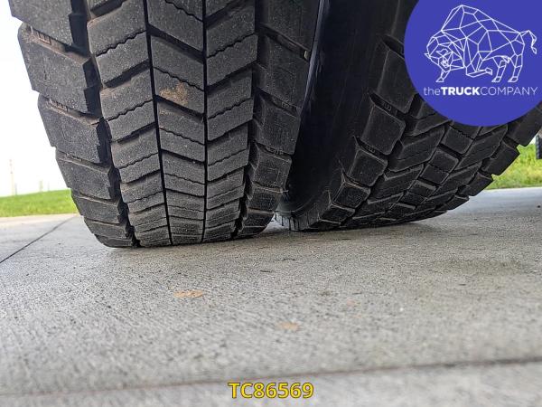 Achteras 2: Bandenmaat: 315/80 R22.5; Dubbellucht; Bandenprofiel linksbinnen: 15 mm; Bandenprofiel linksbuiten: 17 mm; Bandenprofiel rechtsbinnen: 14 mm; Bandenprofiel rechtsbuiten: 14 mm; Vering: luchtvering