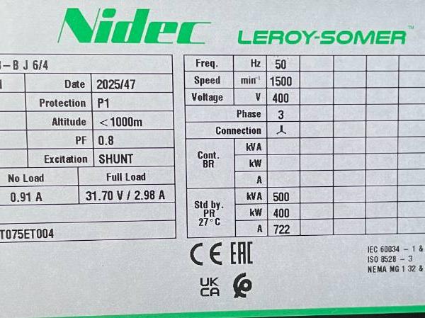 | Spécialités | 6ZTAA13-G4 - 500 kVA Generator - DPX-19845 |