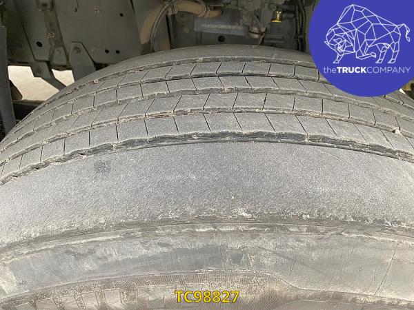 Achteras: Bandenmaat: 315/80 R22.5; Dubbellucht; Bandenprofiel linksbinnen: 5 mm; Bandenprofiel linksbuiten: 7 mm; Bandenprofiel rechtsbinnen: 6 mm; Bandenprofiel rechtsbuiten: 5 mm; Vering: luchtvering