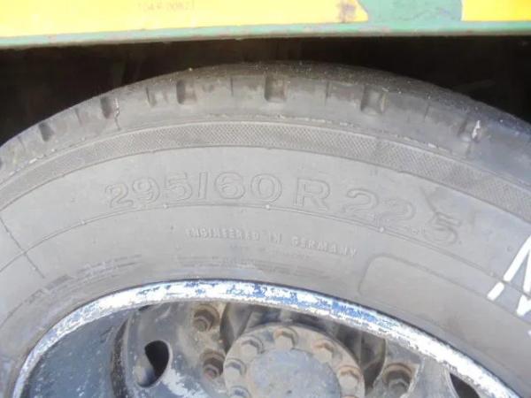 Achteras 1: Bandenmaat: 295/60R22.5; Dubbellucht; Max. aslast: 11500 kg; Vering: luchtvering