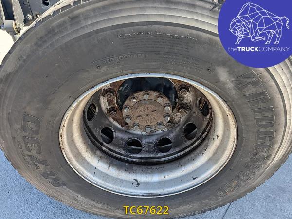 Achteras: Bandenmaat: 315/70 R22.5; Dubbellucht; Bandenprofiel linksbinnen: 5 mm; Bandenprofiel linksbuiten: 7 mm; Bandenprofiel rechtsbinnen: 4 mm; Bandenprofiel rechtsbuiten: 4 mm
