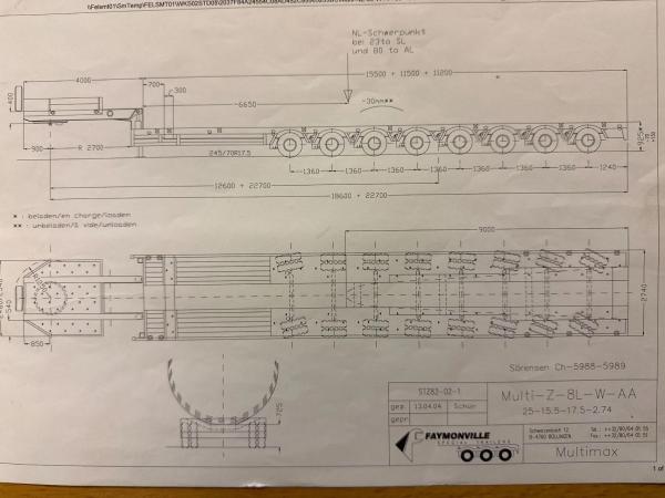 | Spécialités | STNZ-8WAA, 8 AXLE, FORCED STEERING 11,5 M + 11,2 EXTENDABLE TOTALE 42,2 METER |