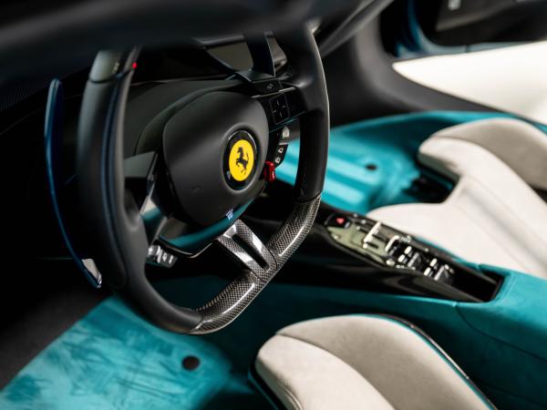 This isn’t just an SF90 Spider, it’s a rolling celebration of Ferrari’s heritage and craftsmanship, conceived for the 10th Anniversary Cavalcade and finished by Ferrari’s Tailor Made atelier. Painted in *glossy Blu Capri FYM.0502, this SF90 Spider is a singular tribute to design, passion, and precision performance, where every thread and brushstroke tells a story.