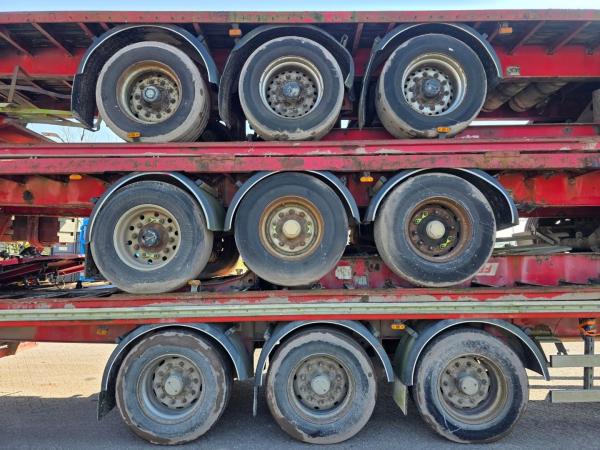 Te koop: Partij van 5 platte opleggers – SMB assen – schijfremmen – export