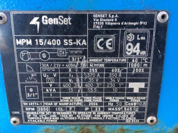 GENERATOR (2006) Genset Welding MPM 15/400 SS-KA - 15 kVA