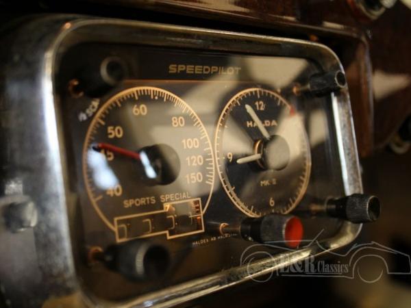 This elegant burgundy red Jaguar XK 140 Fixed Head Coupe was built in 1956 and in the mean time a little adjusted for historical rallies. This Jaguar has been provided with fortified wire wheels and a Roll Bar (easy to remove if you want). The wooden dashboard has two time-original Halda Tripmasters. The matching numbers 3442CC engine has bigger carburators and 5 speed gearbox. This sporty Jaguar has disc brakes also. This unique XK140 is ideal for fans of classic rally of een very beautiful basis for rebuilding to its original specifications.