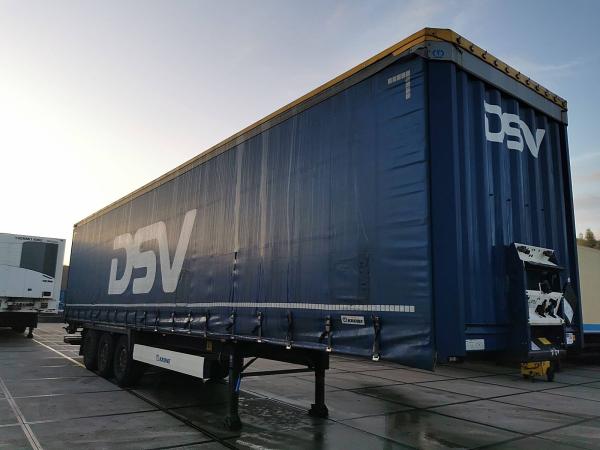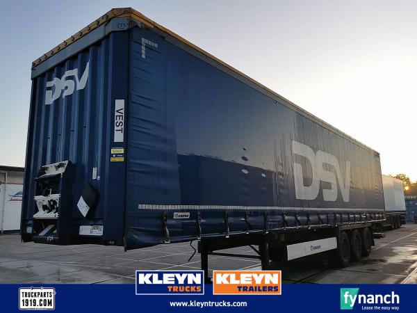 Aantal Assen: 3, Eigen gewicht: 6720 kg, Totaalgewicht: 39000 kg, Kingpin afmeting: 2 inch, Vering type: vollucht, ABS (Anti Blokkeer Systeem), EBS, Zijwand materiaal: zeil, Schuifdak, Laadklep, Soort laadklep: onderschuif klep, Capaciteit laadklep: 2000 kg, Merk laadklep: bar cargolift, Materiaal laadklep: metaal en aluminium, Plateau grootte: 240x165