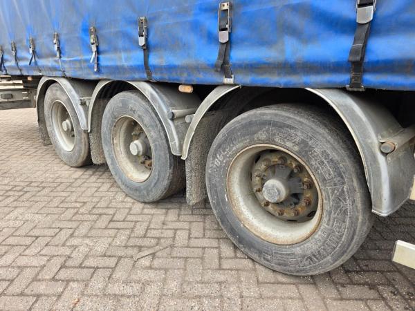 Achteras 1: Bandenmaat: 385/65 R22.5; Max. aslast: 9000 kg; Bandenprofiel links: 50%; Bandenprofiel rechts: 50%; Remmen: trommelremmen