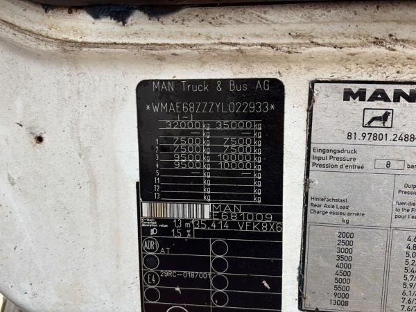 MAN (2000) MAN 35.414 (6 CYLINDER / 8X6 / BIG AXLES / STEEL SUSP. / LAMES / GRAND PONT) EL24541