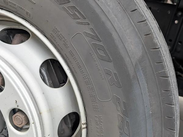 Achteras: Dubbellucht; Bandenprofiel linksbinnen: 12 mm; Bandenprofiel linksbuiten: 10 mm; Bandenprofiel rechtsbinnen: 10 mm; Bandenprofiel rechtsbuiten: 9 mm; Vering: luchtvering