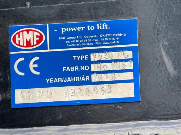 Kraan: HMF 2620 RC, bouwjaar 2018, achter de cabine